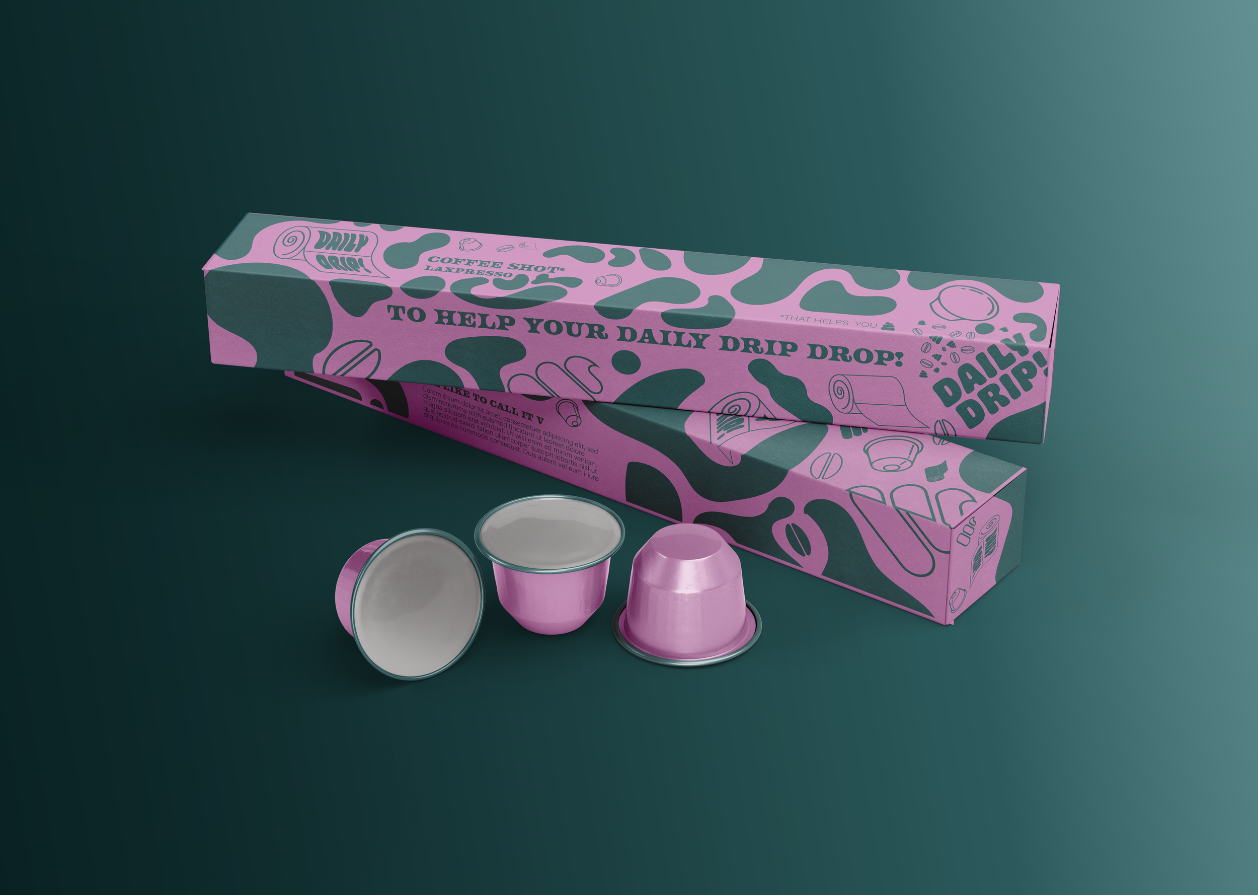 The pre-glam ritual you didn’t know you needed. Daily Drip! is a fictional laxative sold in espresso capsules — because we know that good design should move you as smoothly as it looks. Bold, colourful, and with an explosive tone of voice, the identity blends modern coffee-culture aesthetics with the vibrancy of wellness products.